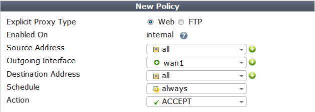 - Go to Network > Interfaces and edit the internal interface, select Enable Explicit Web Proxy and select OK.