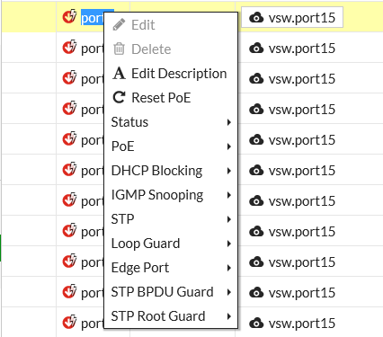 Go to WiFi & Switch Controller > FortiSwitch Ports. Right-click any port and then enable or disable the following features: