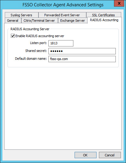 - Select Enable RADIUS accounting server and set the Shared secret.