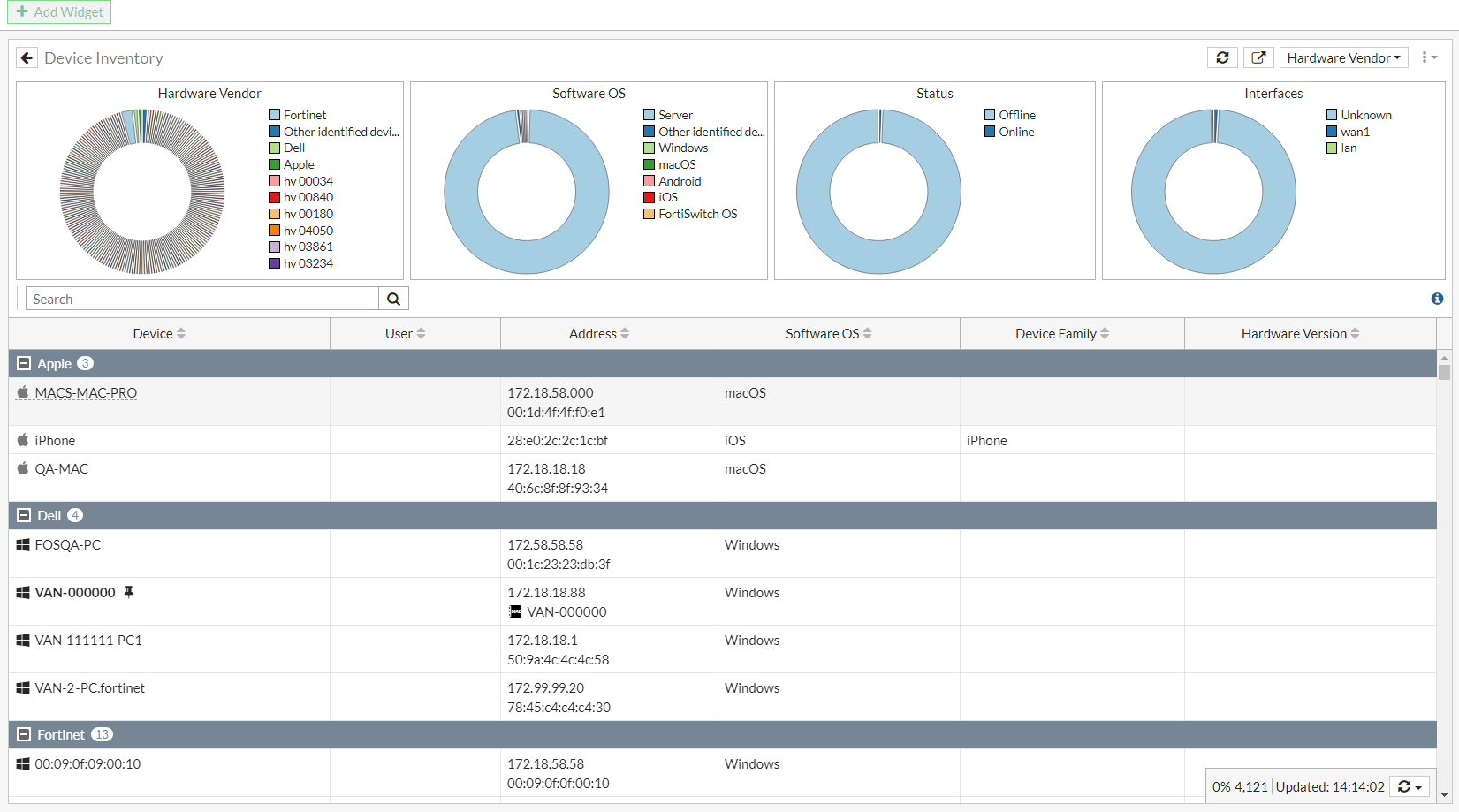 For example, go to Dashboard > Users & Devices and expand the Device Inventory widget.