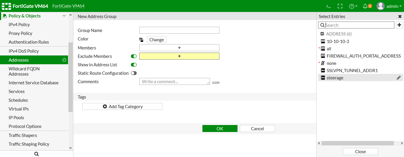 - Create a new address group, or edit an existing address group.