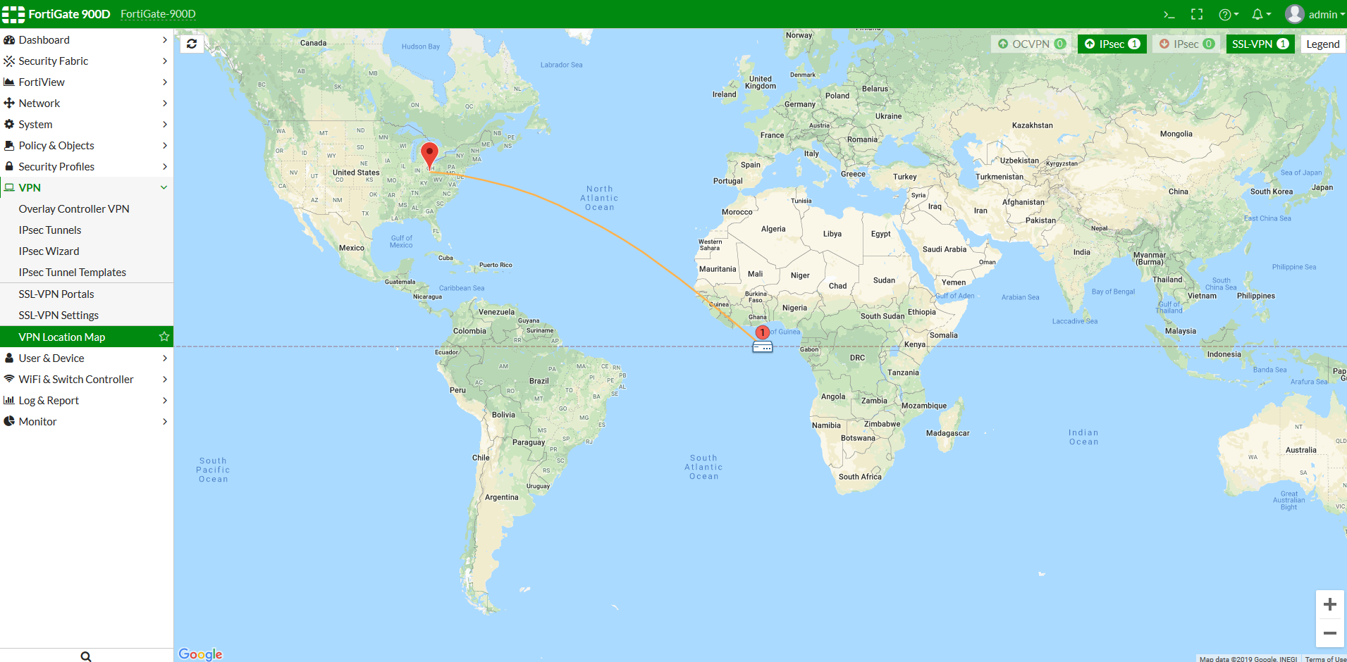 - Go to VPN > VPN Location Map and view VPN connection activity.
