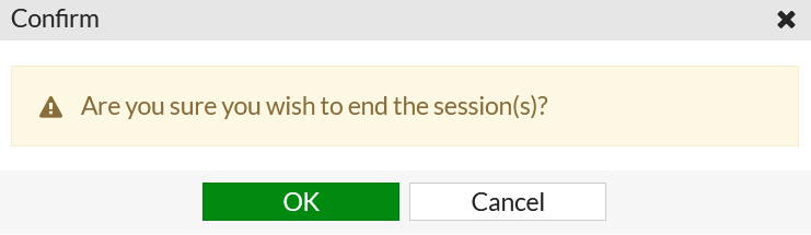 - Click OK in the confirmation dialog. The selected sessions are now ended.