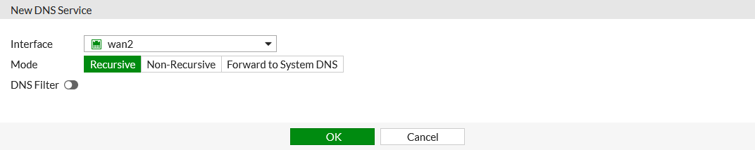 - Select the Interface for the DNS server, such as wan2.