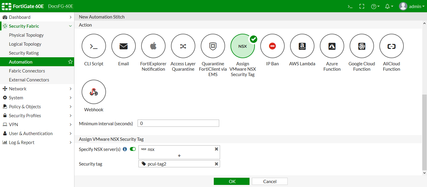- Go to Security Fabric > Automation.