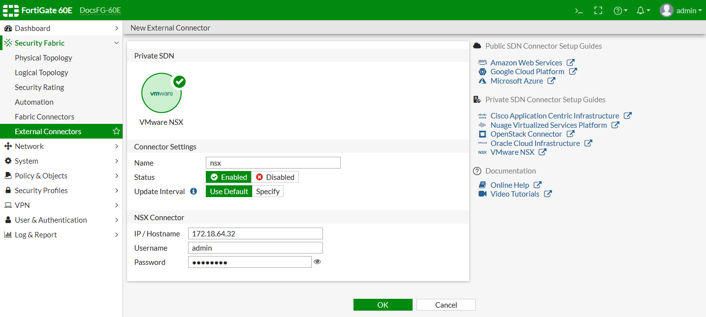 - Go to Security Fabric > External Connectors.