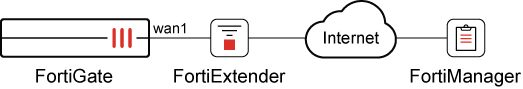 In this example, FortiManager manages FortiGate, and FortiExtender is connected to FortiGate over wan1 interface.