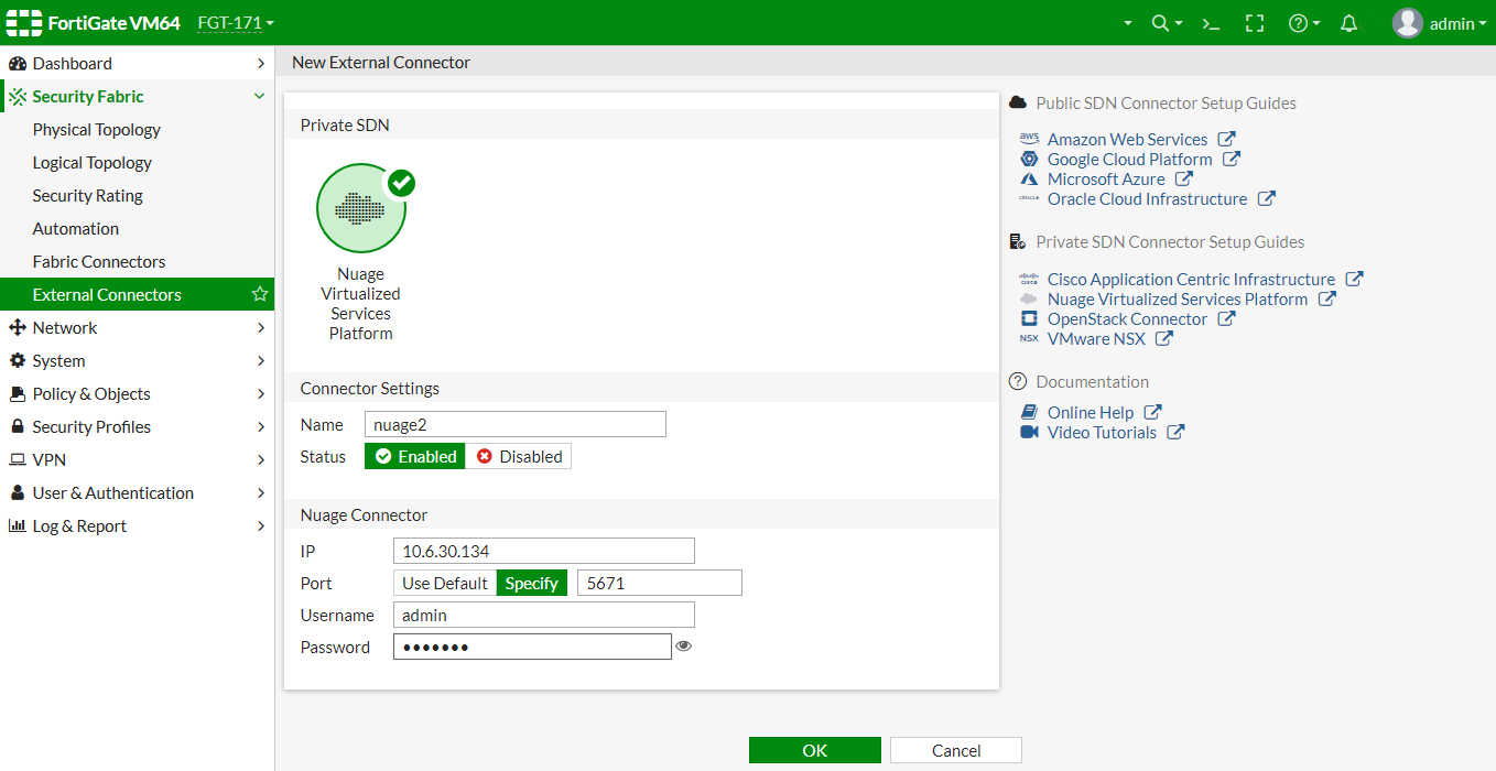 - Configure the Nuage SDN connectors: