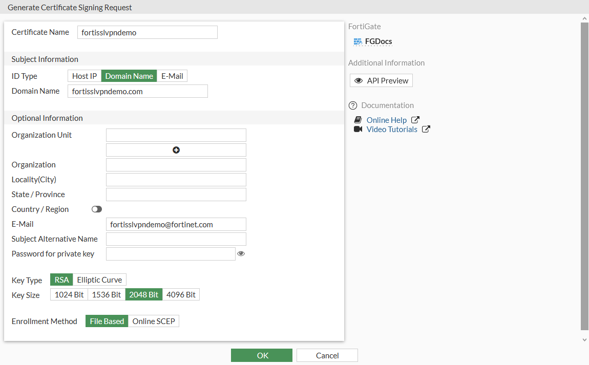Some CAs can auto-generate the CSR during the signing process, or provide tools for creating CSRs. If necessary, a CSR can be created in your FortiGate device’s GUI.