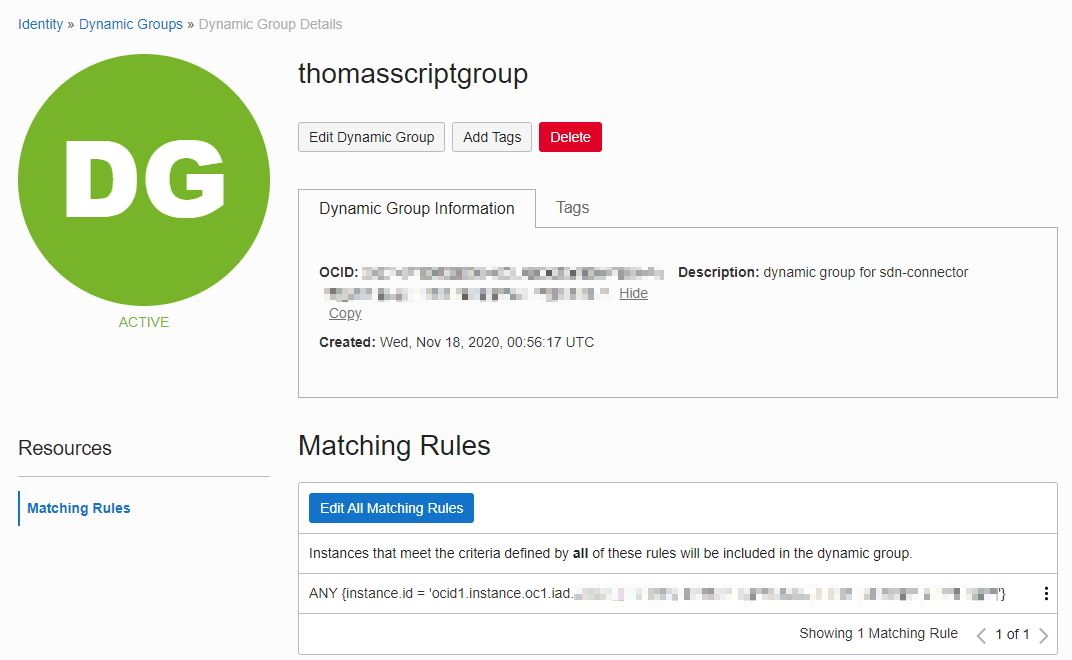 - Configure an IAM policy and dynamic group (see How Policies Work and Managing Dynamic Groups in the OCI documentation).