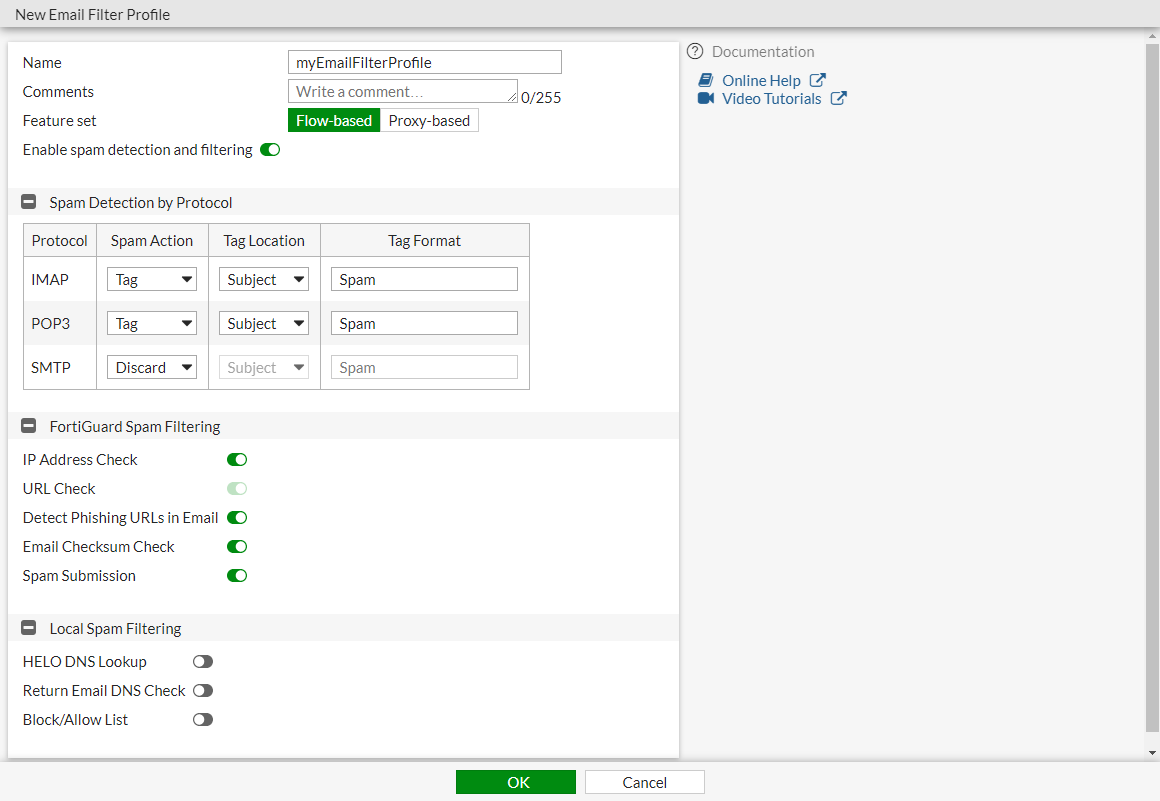 - In the FortiGuard Spam Filtering Spam Filtering section, you can enable or disable the following filters: