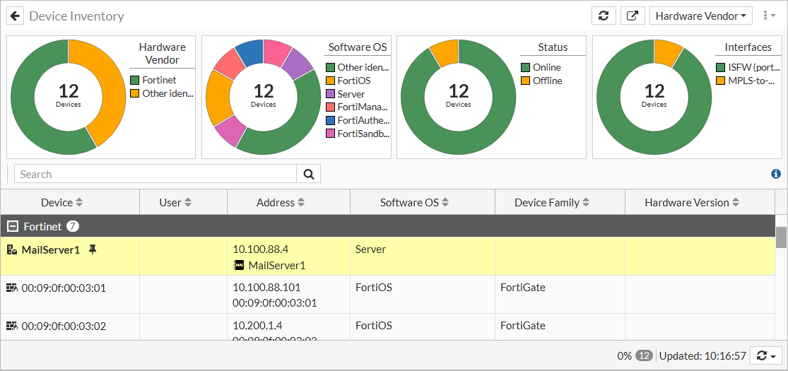 Assets detected by device detection appear in the Device Inventory widget. You can manage policies around devices by adding a new device object (MAC-based address) to a device. Once you add the MAC-based address, the device can be used in address groups or directly in policies.