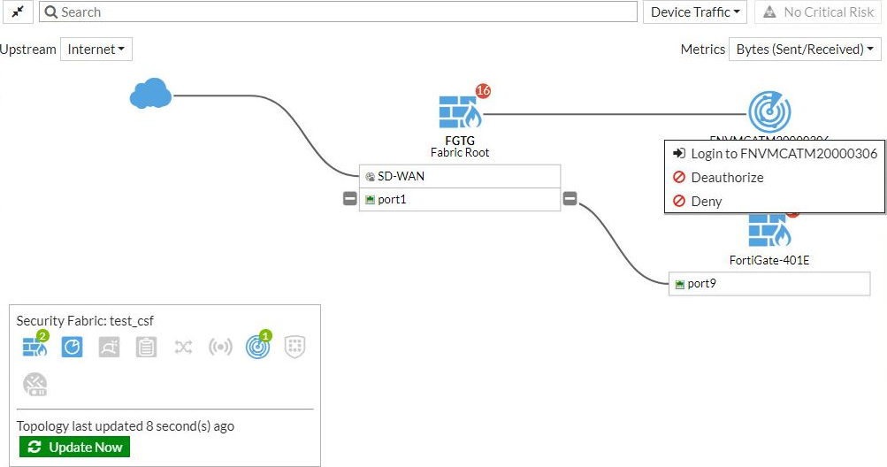 - On the FortiGate, go to Security Fabric > Physical Topology or Security Fabric > Logical Topology.