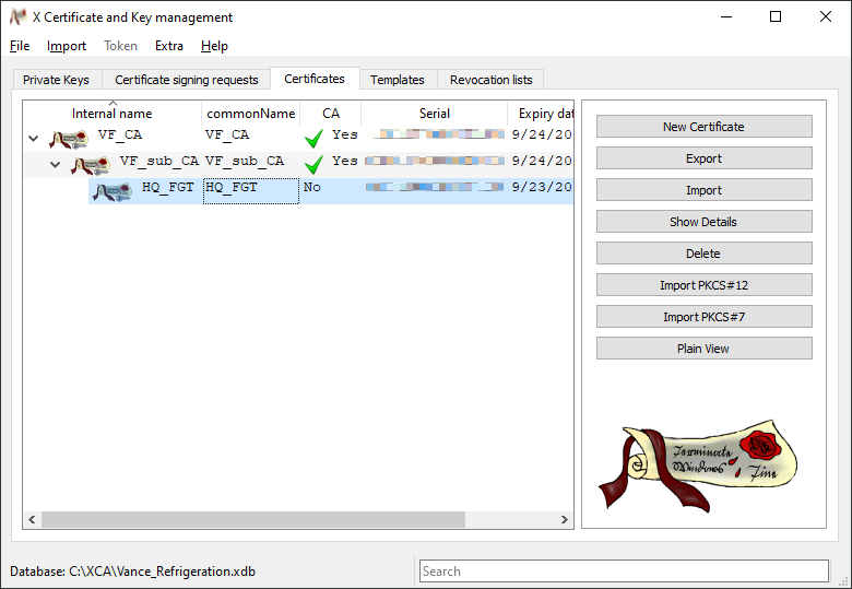 Creating certificates with XCA