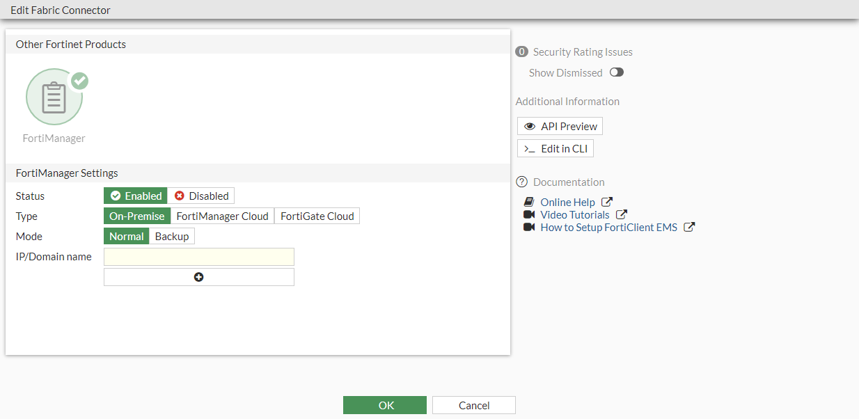 - Enter the IP/Domain Name of the FortiManager.