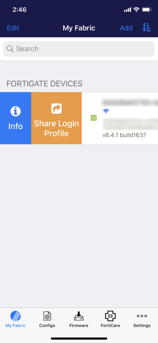 - In FortiExplorer, go to My Fabric.