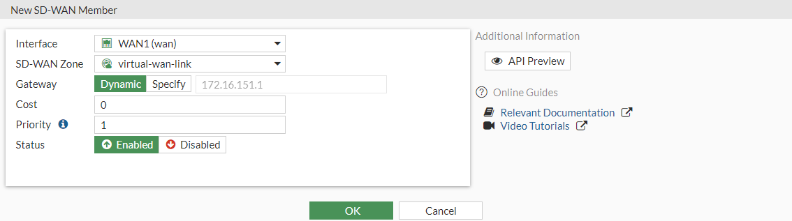 Repeat these steps to create SD-WAN members for the WAN2, VPN1, and VPN2 interfaces.