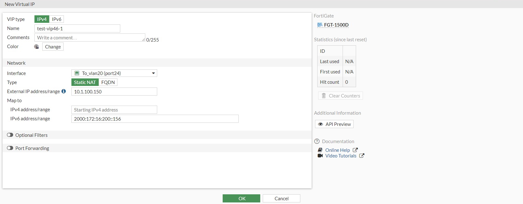 1. Go to Policy & Objects > Virtual IPs and click Create New > VIP.