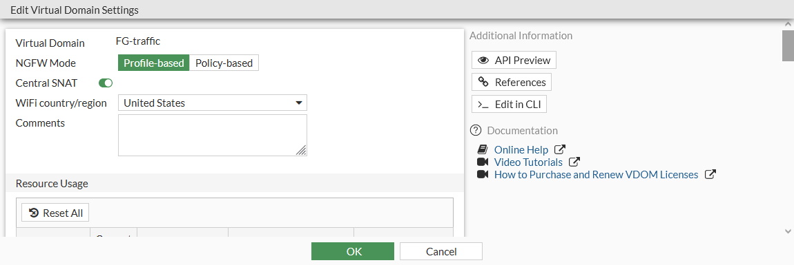 Select a VDOM and click Edit. The Edit Virtual Domain Settings pane opens.