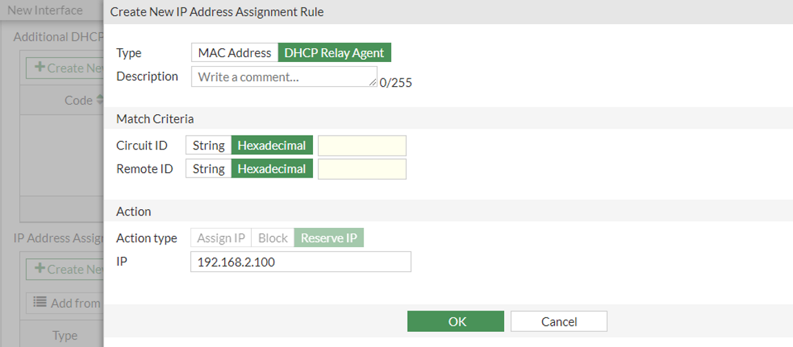 Option 82 remote ID of the client that will get the reserved IP address. Format: the MAC address of the client. |