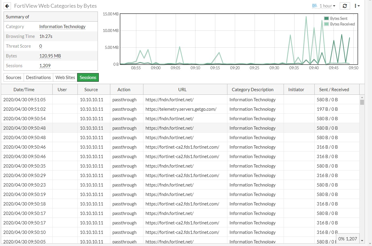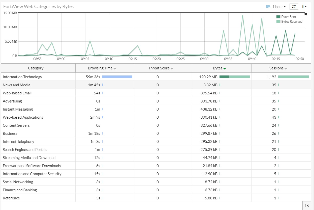 You can use FortiGuard web categories to populate the category fields in various FortiView monitors such as FortiView Web Categories, FortiView Websites or FortiView Sources. To view the categories in a monitor, the web filter profile must be configured to at least monitor for a FortiGuard category based on a web filter and applied to a firewall policy for outbound traffic.