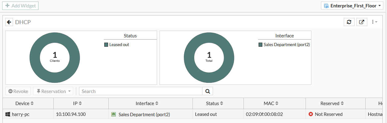 The DHCP monitor shows all the addresses leased out by FortiGate's DHCP servers. You can use the monitor to revoke an address for a device, or create, edit, and delete address reservations.