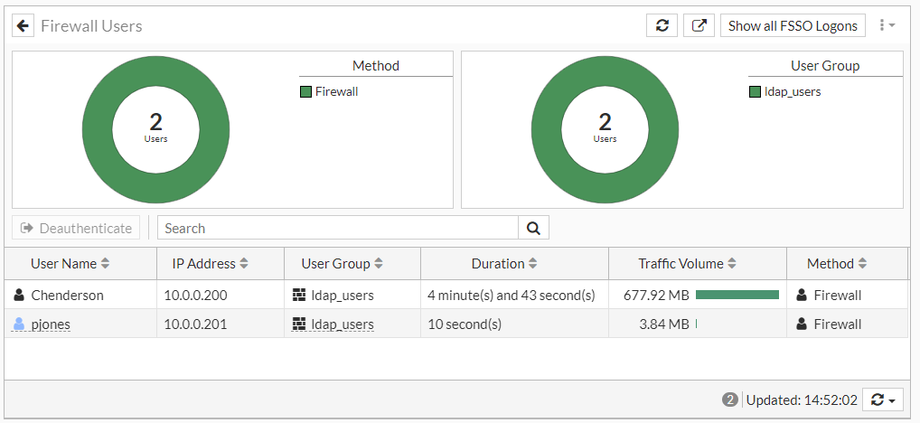 - To show FSSO logons, click Show all FSSO Logons at the top right of the page.