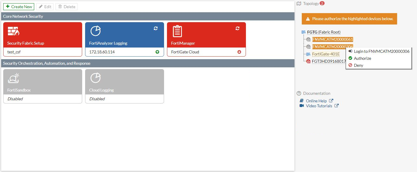 - Click on the highlighted FortiNAC and select Authorize.