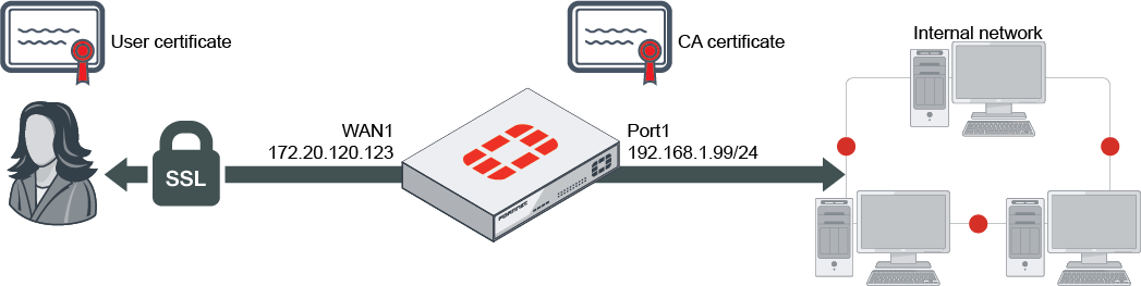 To use the user certificate, you must first install it on the user’s PC. When the user tries to authenticate, the user certificate is checked against the CA certificate to verify that they match.