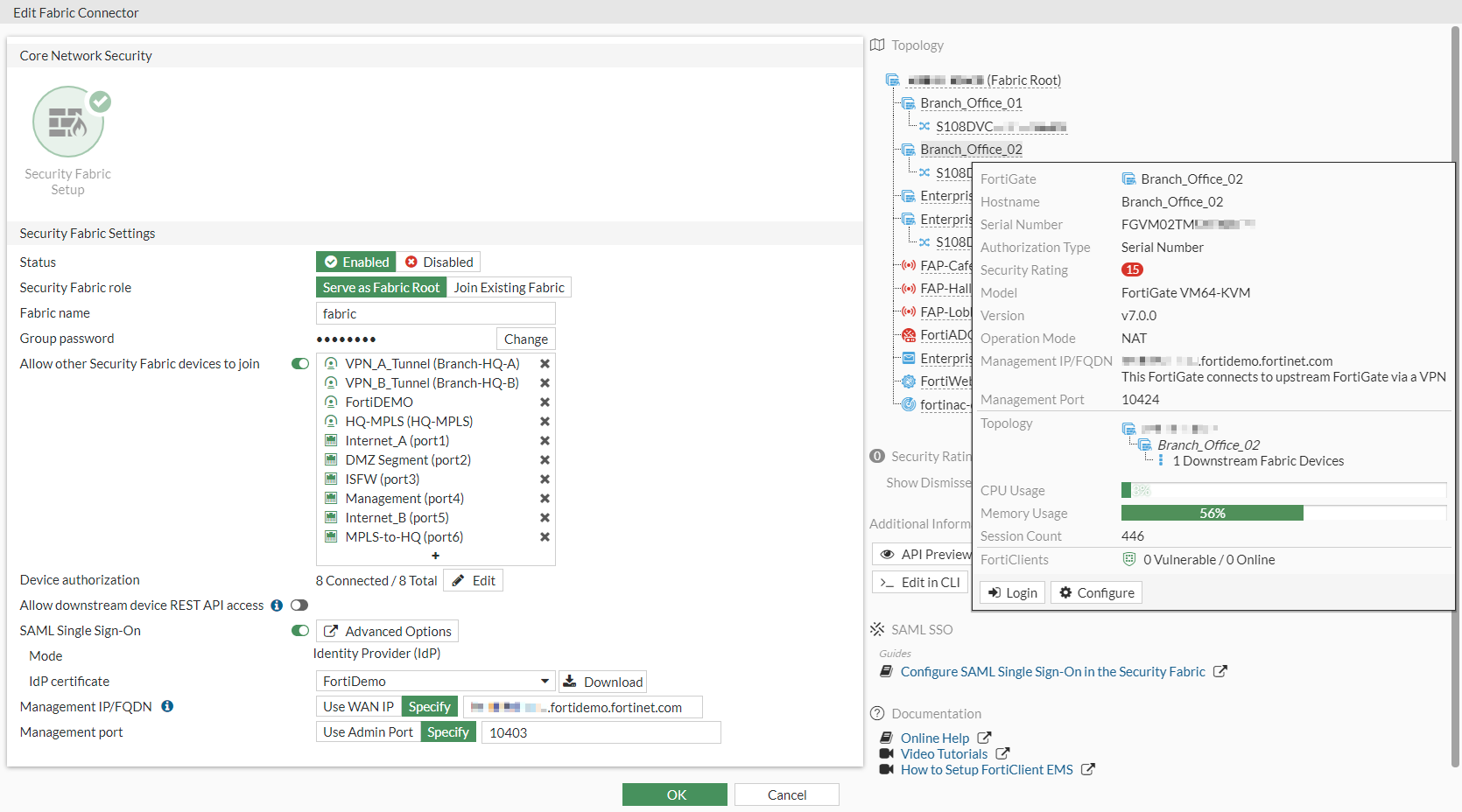 - Go to Security Fabric > Fabric Connectors and double-click the Security Fabric Setup card.