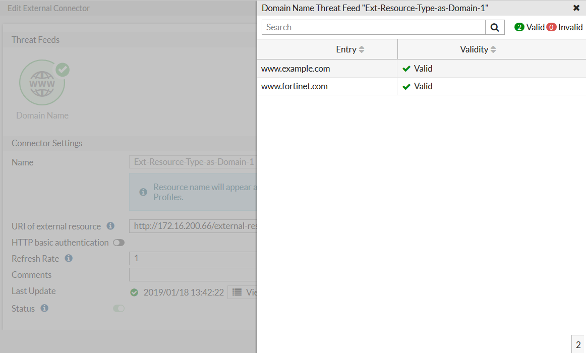 External resources provides the ability to dynamically import an external block list into an HTTP server. This feature enables the FortiGate to retrieve a dynamic URL, domain name, IP address, or malware hash list from an external HTTP server periodically. The FortiGate uses these external resources as the web filter's remote categories, DNS filter's remote categories, policy address objects, or antivirus profile's malware definitions. If external resources are updated, FortiGate objects are also updated dynamically.