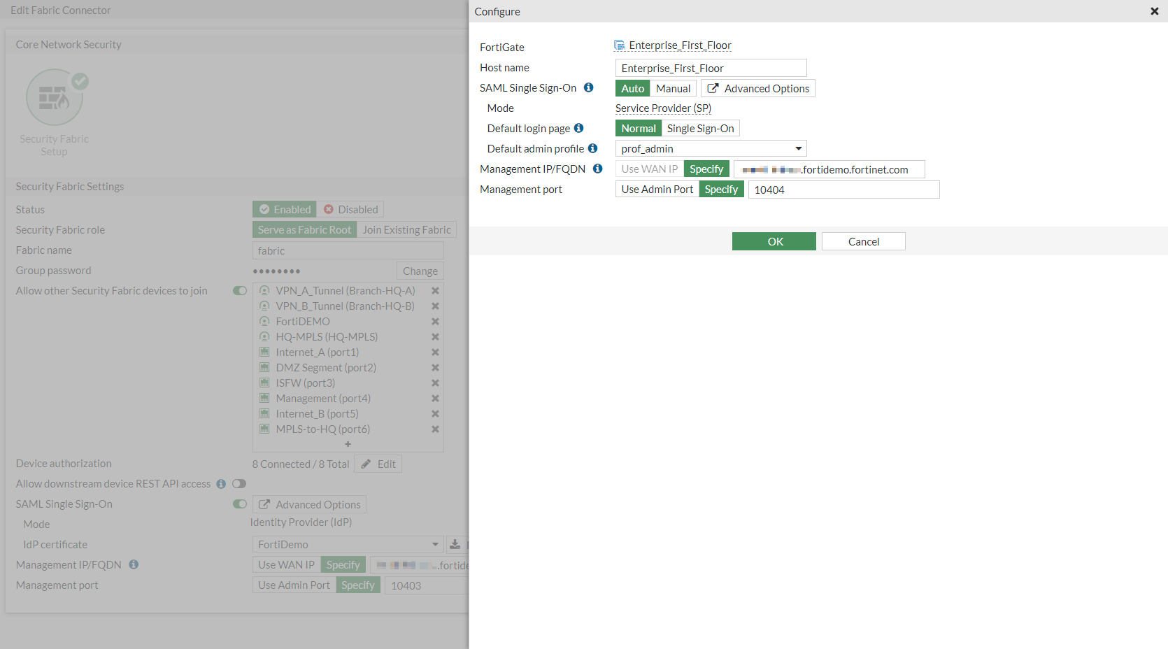 - Go to Security Fabric > Fabric Connectors and double-click the Security Fabric Setup card.