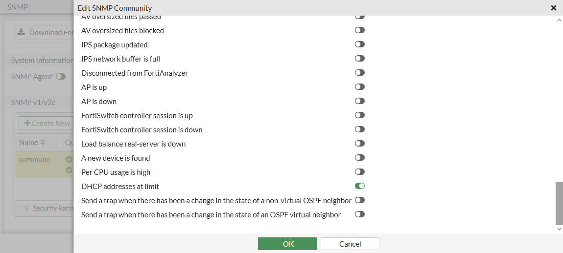 - In the SNMP Events list, enable DHCP addresses at limit.