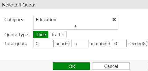 In addition to using category and classification blocks and overrides to limit user access to URLs, you can set a daily quota by category, category group, or classification. Quotas allow access for a specified length of time or a specific bandwidth, and are calculated separately for each user. Quotas are reset daily at midnight.