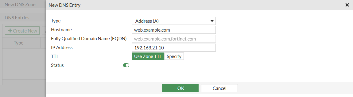 6. Enter the Domain Name of the zone, for example, fortinet.com.