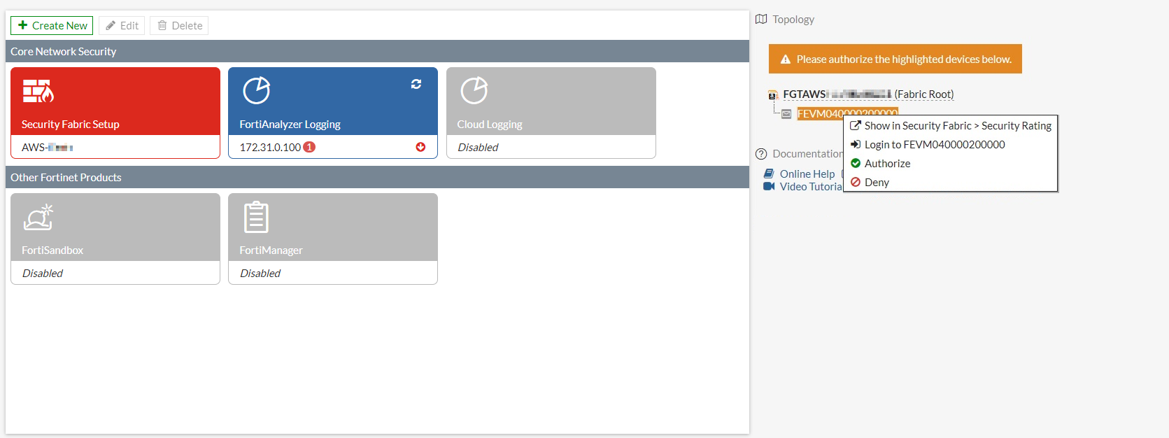 - In the topology tree, hover over the FortiMail and click Authorize.