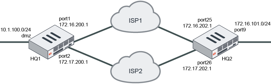 - Configure port25, port26, and port9 as shown in the topology diagram.