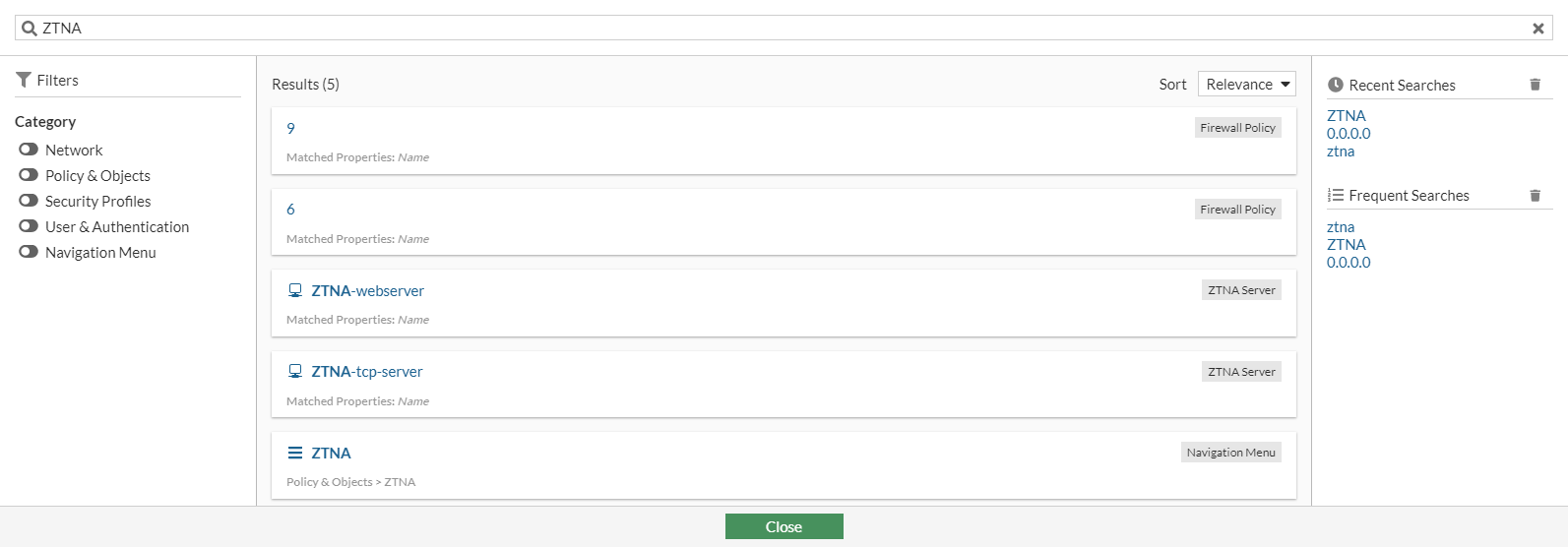 ZTNA navigation menu item under Policy & Objects > ZTNA.