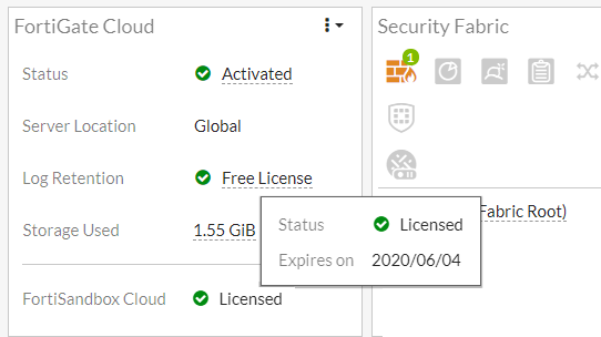 - Go to Dashboard > Status to view the FortiSandbox Cloud license indicator.