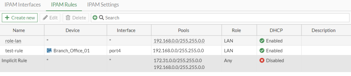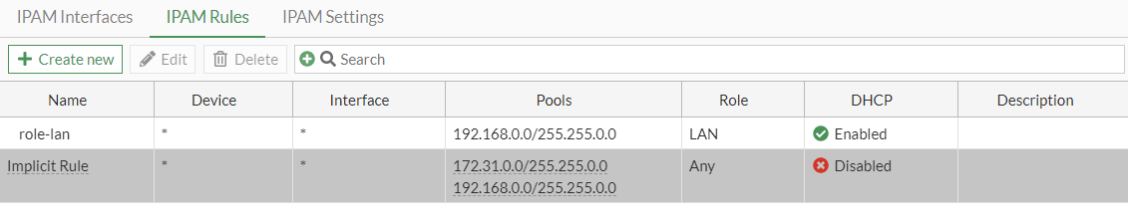 Go to Network > IPAM > IPAM Rules. The role-lan and Implicit Rule rules have been configured by default.