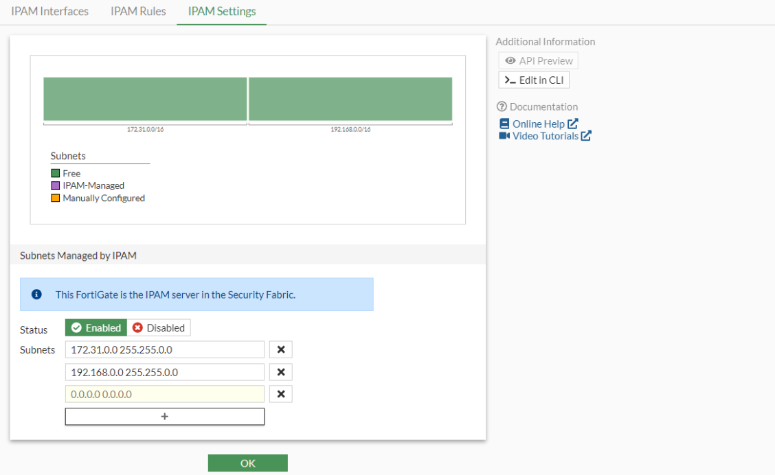 Enable IPAM status. See Add new IPAM GUI page 7.2.1 for more information.