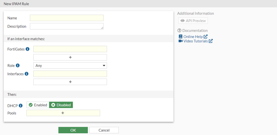 IPAM pools and rules can be defined on a FortiGate not in a Security Fabric or in the root FortiGate of a Security Fabric. |