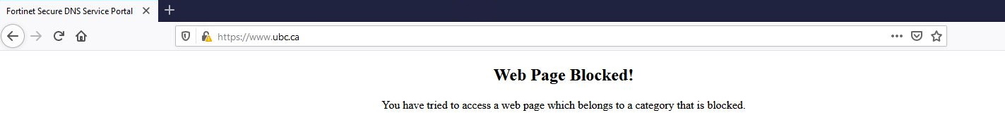 - In your browser, go to a website in the education category (www.ubc.ca). The website is redirected to the block page.