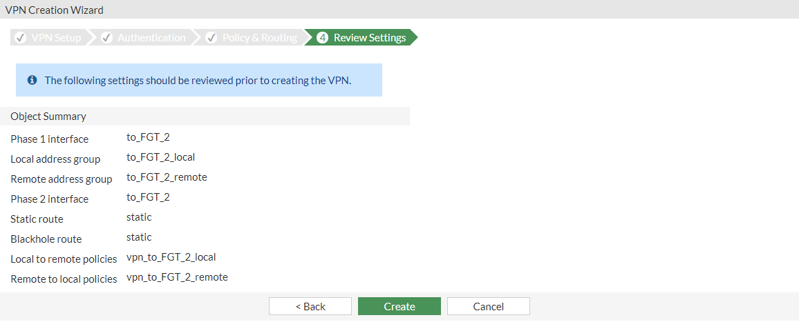 Review the VPN settings and click Create.