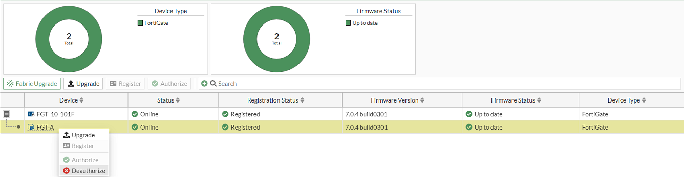 - Go to System > Fabric Management and select a downstream FortiGate in the table.