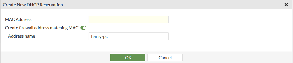 To create a DHCP reservation: