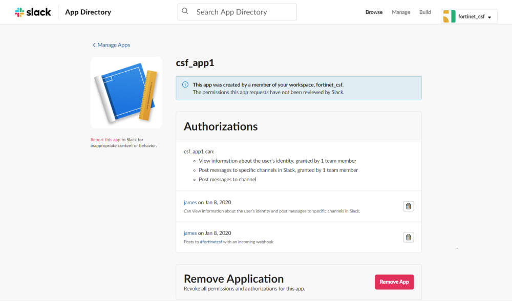 - Create a Slack application for the workspace.