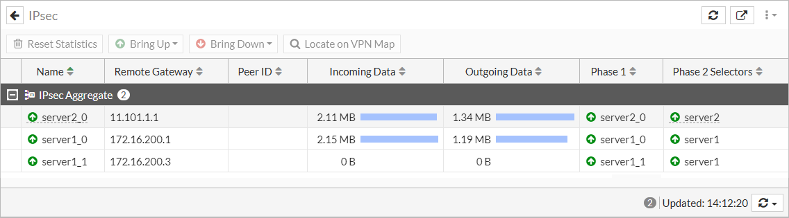 # diagnose sys ipsec-aggregate list server members(3): server1_1 server1_0 server2_0 -