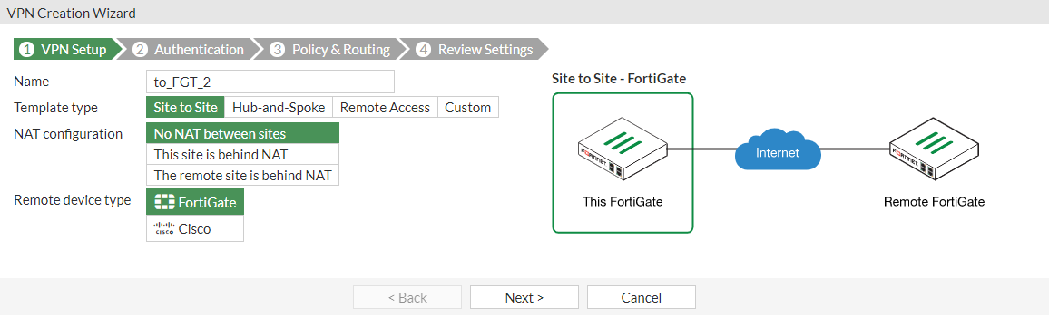 - Select Site to Site.