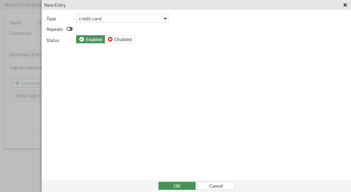 1. Go to Security Profiles > Data Leak Prevention, select the Dictionaries tab, and click Create New.